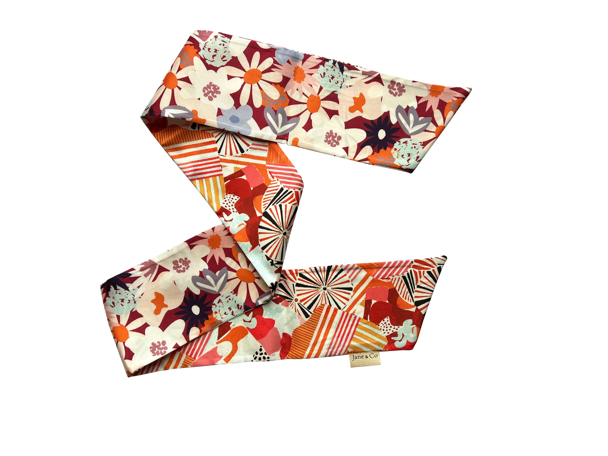 Ruban 91 x 8 cm doublé avec un motif différent de chaque côté. Idéal pour accessoiriser vos tenues. Dans une démarche zéro déchet, les rubans sont confectionnés à partir des chutes de tissus de nos foulards. Vous recevrez votre ruban délicatement empaqueté dans un pochon en toile de coton.
